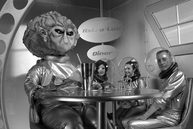 "The Lost Episode." Retro-future diner scene from the Medical Miracles campaign. A vision of the future from the point of view of a cheesy 50's TV show.