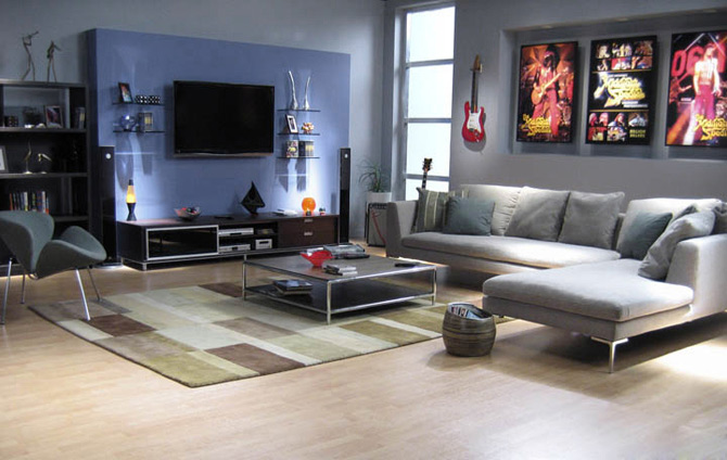 Host hawks rock n roll DVD's in this living room set.