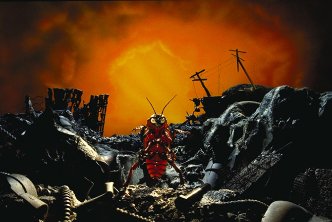 Cockroach rises amidst post holocaustic rubble. 4' x 4' forced perspective set. Custom backdrop. Images©Sterling Storm