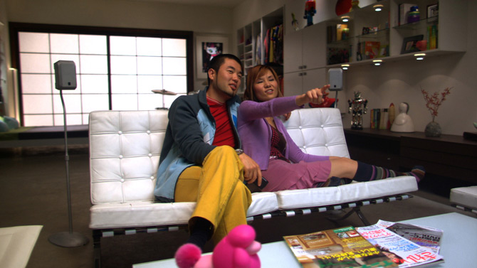 A young couple enjoys music, TV and their robot collection in this Tokyo studio apartment set. Image©Intel